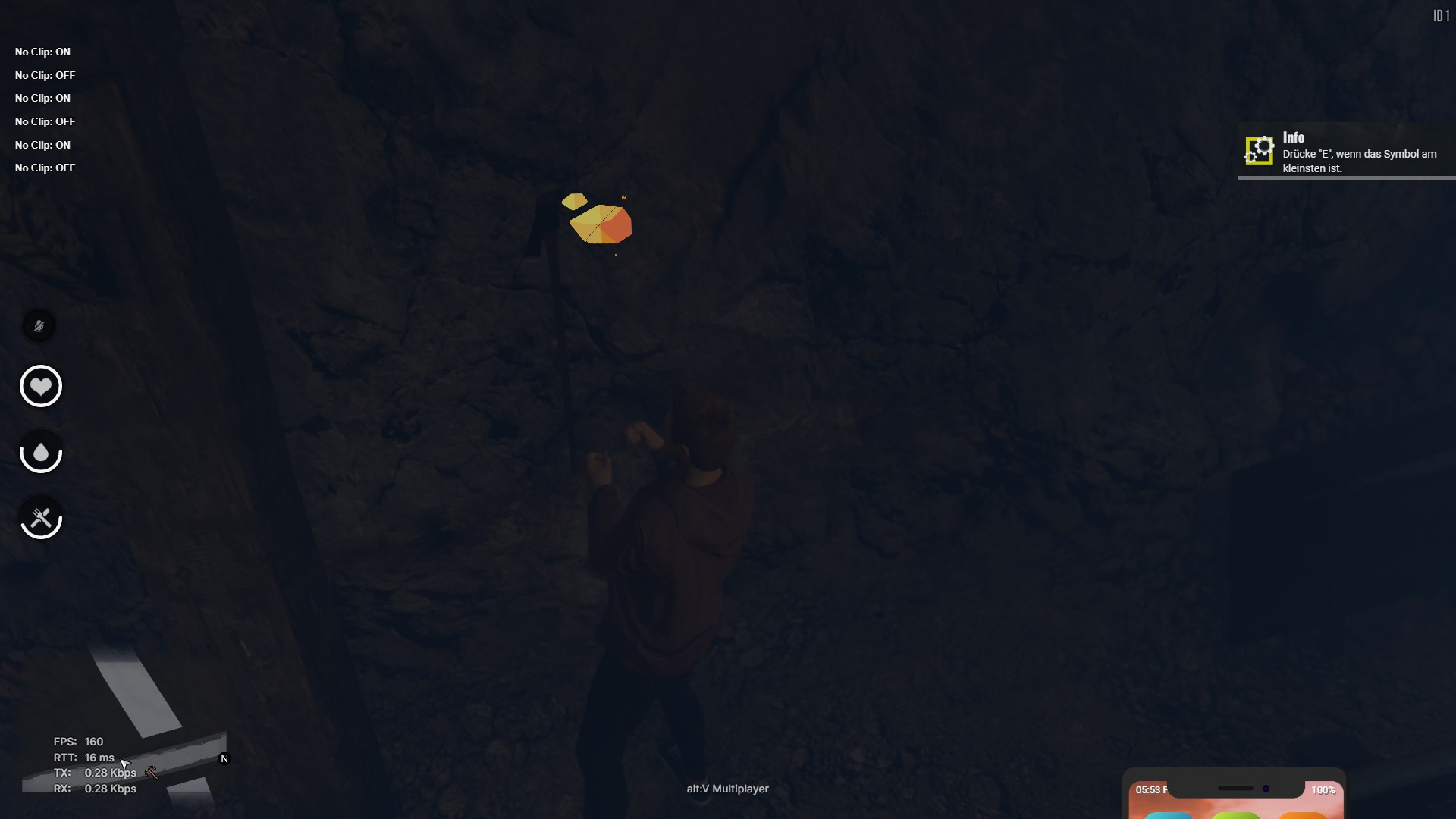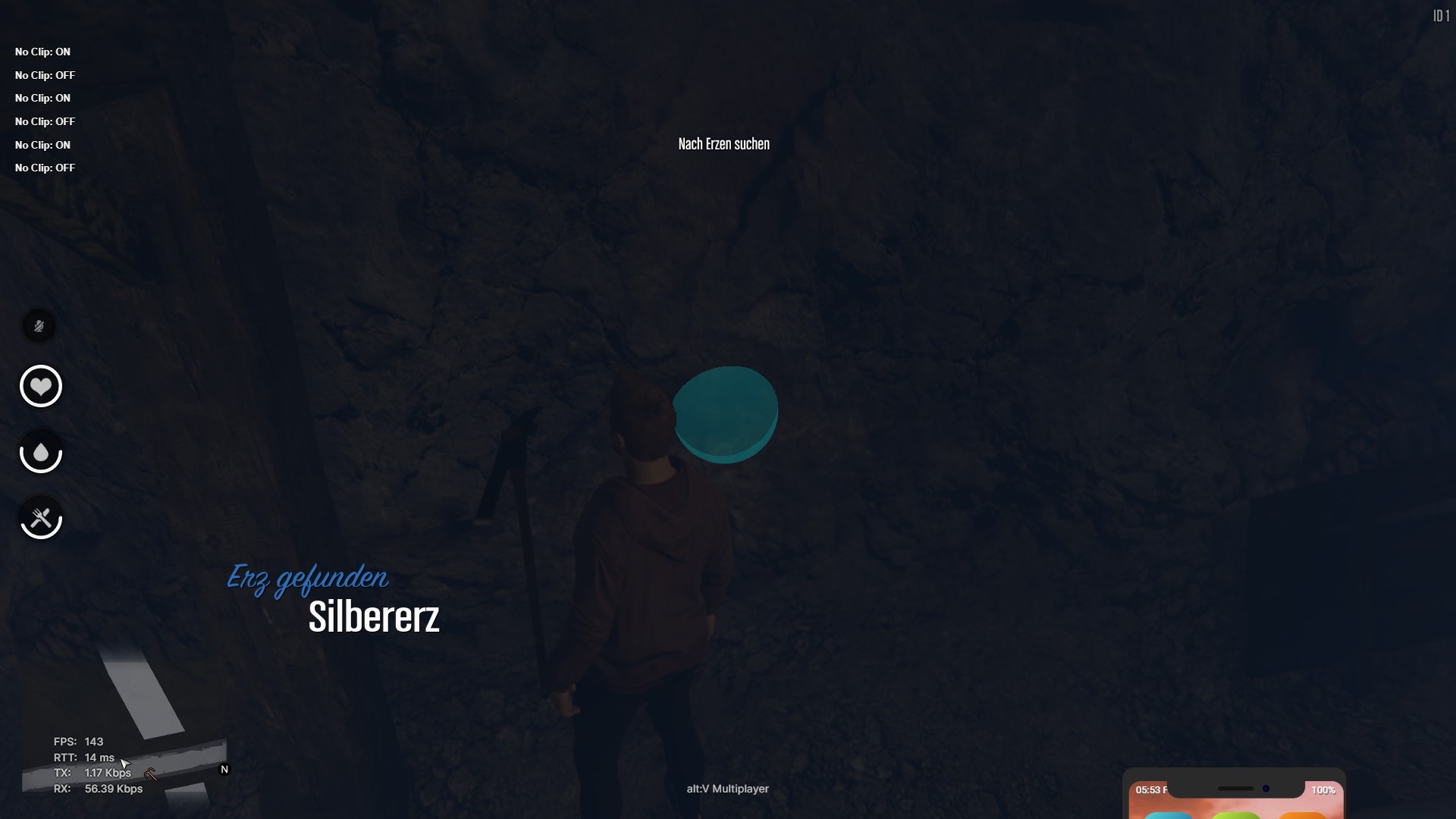 Die Spitzhacke kommt nun ins Spiel, um an den zuvor (mittels Erzdetektor) gefundenen Ressourcenquellen entsprechende Erze zu gewinnen. Dafür wird die Spitzhacke möglichst nah an der Erzader angesetzt und nach einigem Hacken erhaltet ihr das Erz, welches diese Erzquelle mit sich bringt.